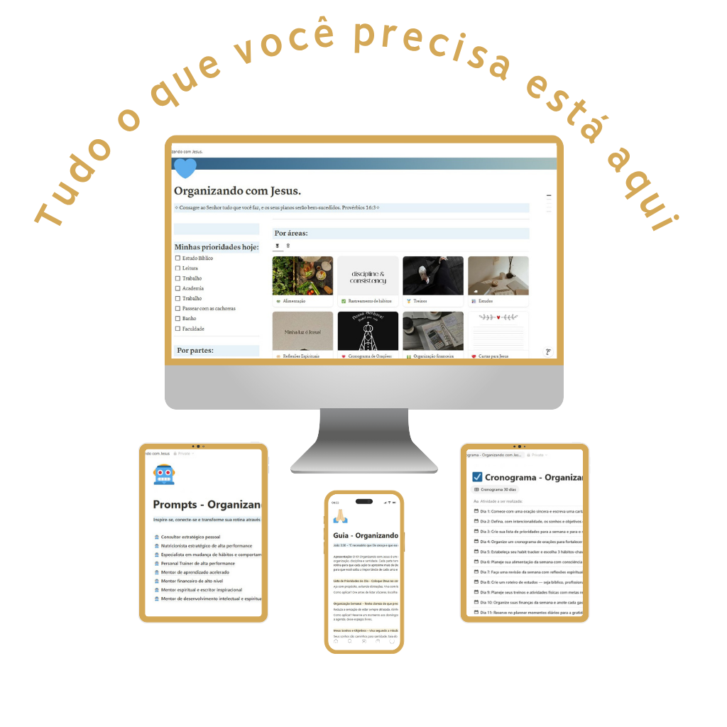 Foi aí que percebi que não dava mais pra viver assim. Criei um sistema simples, estratégico e com base sólida: coloquei Jesus no centro da organização da minha vida. E isso mudou tudo.